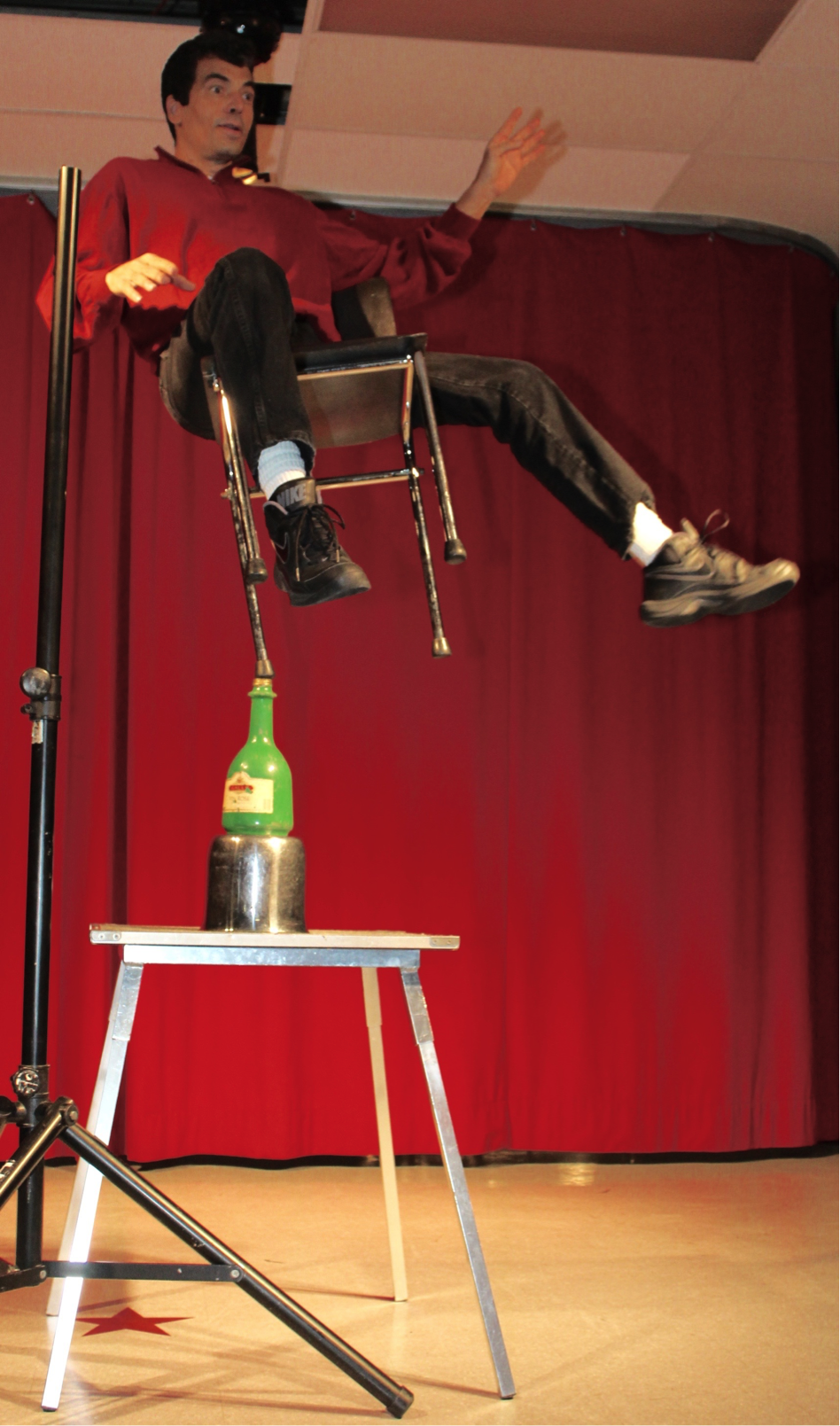 None. Our shows are fully self-contained and adaptable to any circumstance. You only provide enough space to hold your audience with a clear performing area (preferably an auditorium or gymnasium).